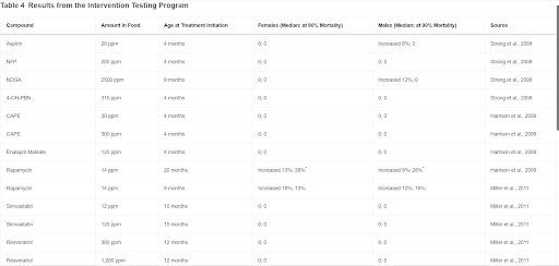 Results from the Intervention Testing Program