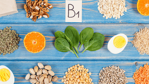 Vitamin B1 có thể được bổ sung qua đường ăn uống. Nó được tìm thấy trong các loại thực phẩm như men, ngũ cốc, đậu, quả hạch và thịt… Tuy nhiên, hàm lượng vitamin B1 trong các loại thức ăn thường không đáp ứng đủ nhu cầu cơ thể, chưa kể việc khả năng hấp thu giảm do trải qua quá trình tiêu hóa phức tạp.